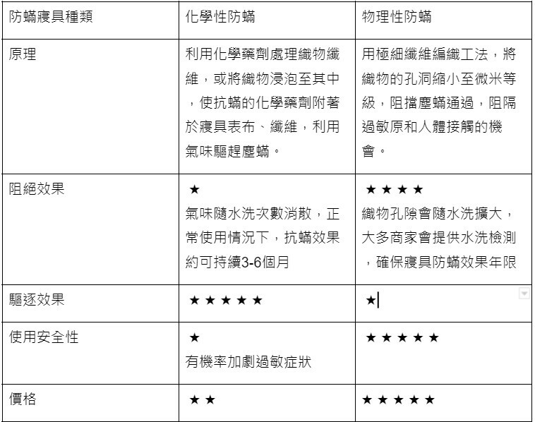 1. 化學性防蟎—將抗蟎化學藥劑附著於織物表面,利用氣味驅趕塵蟎。