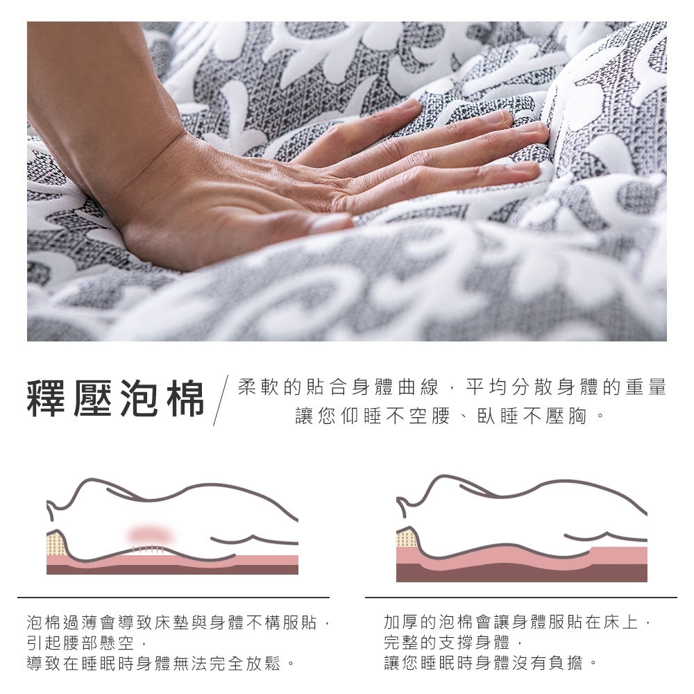 蜂巢式獨立筒排列提供更好支撐性