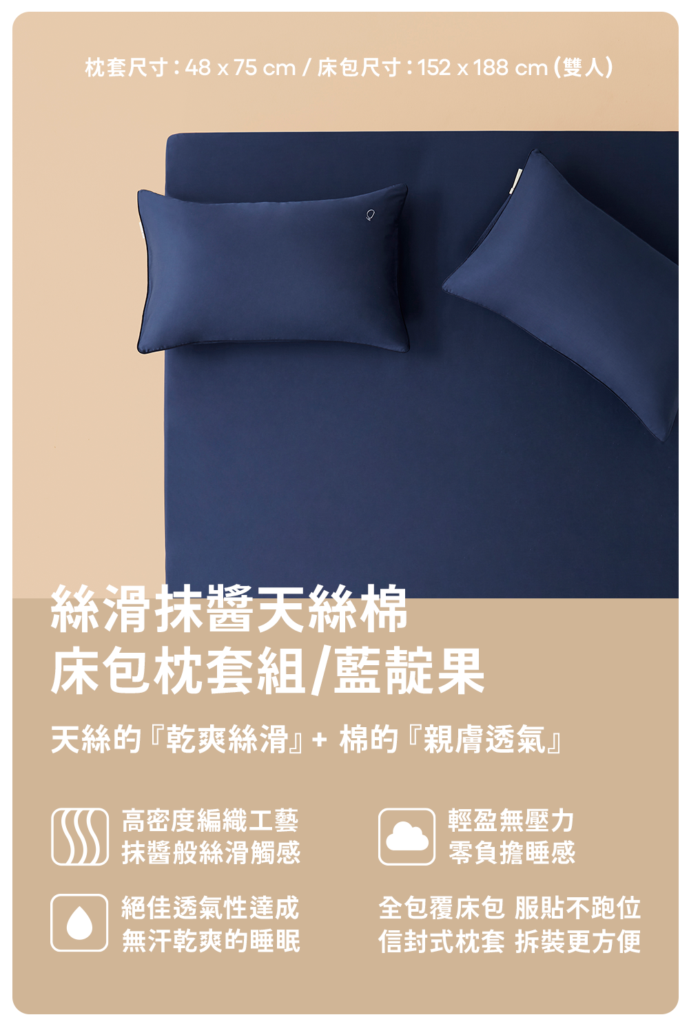 【聖誕福袋】好好睡奶蓋被鹽鹽布朗+天絲棉雙人-藍靛果醬/4件組